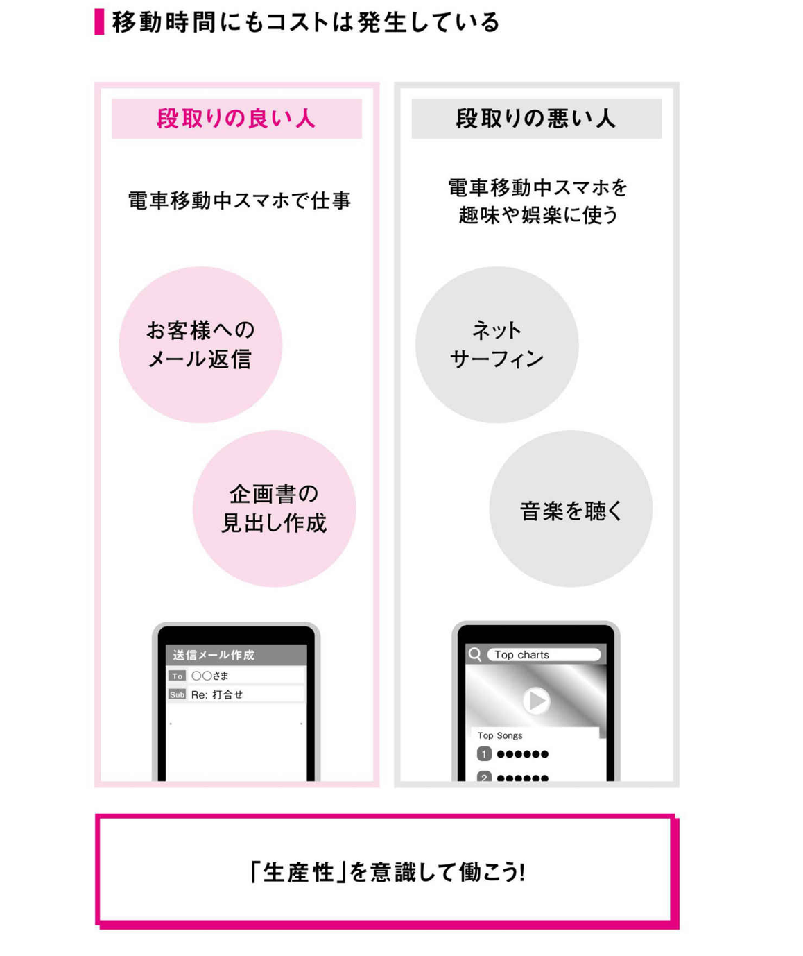 段取りとは、速くメールを打つ、速く入力をする、といったことではありません。動作を速くするといったレベルのことではないのです。
