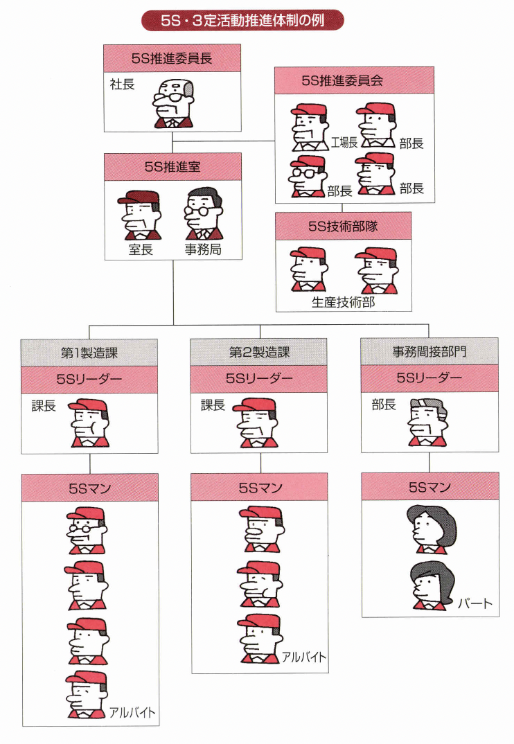 そしてトップは嫌がらずに5S推進の委 員長に就任し、全社を巻き込む体制とします。