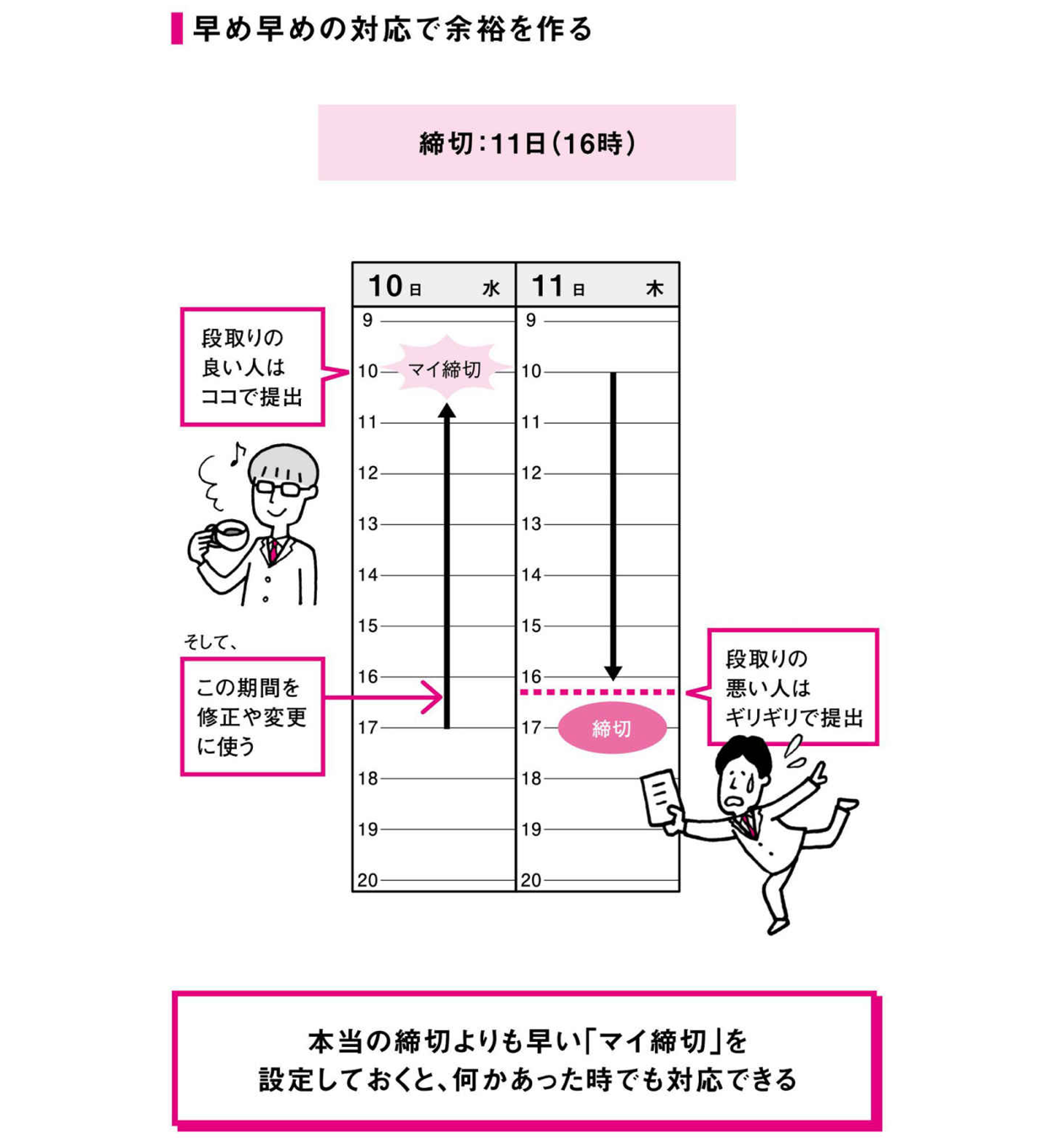 ◆「マイ締切」を設けるだけで評価もアップ