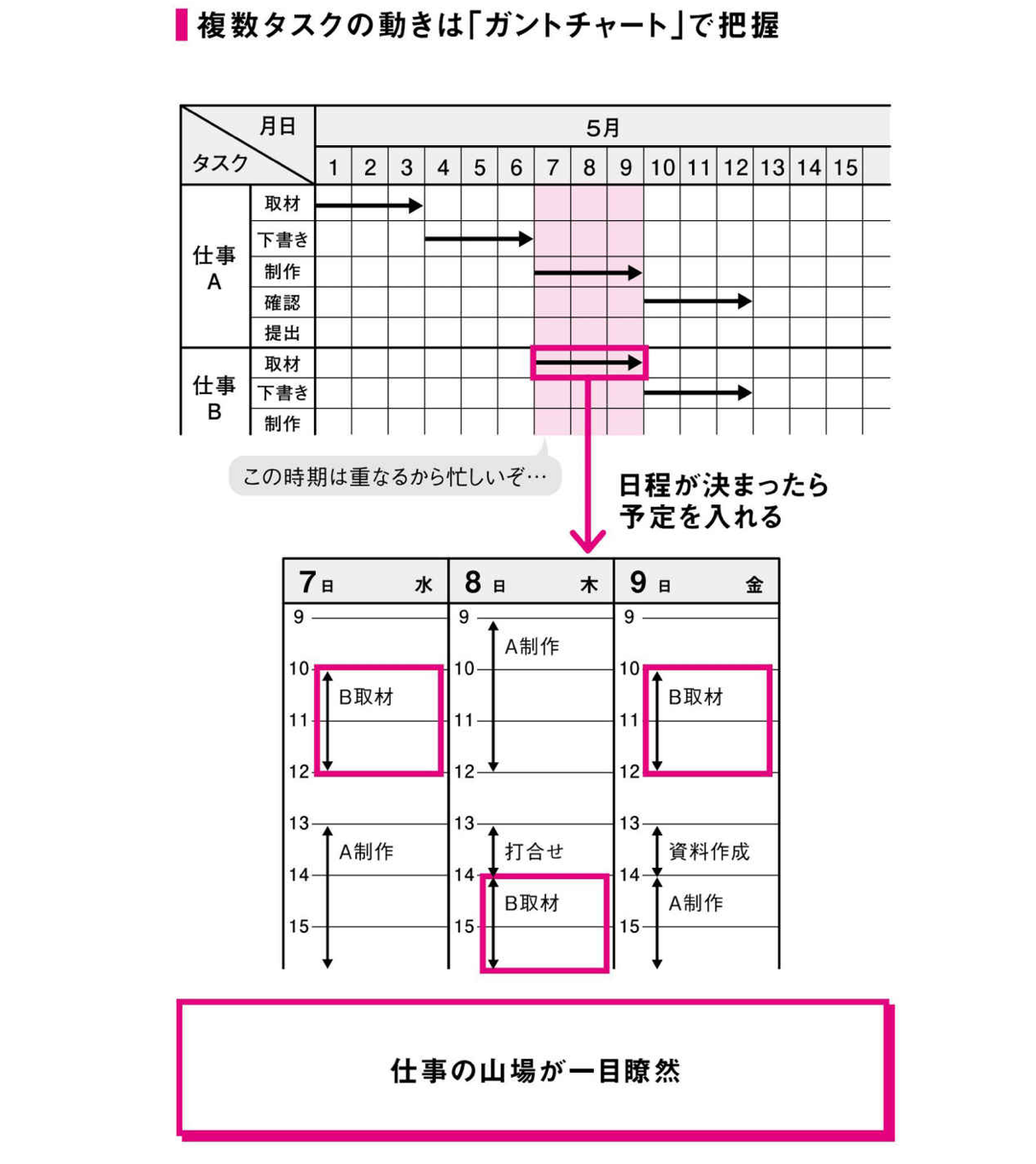 23複数仕事の同時進行は山場さえずらせば大丈夫 抱えている仕事を細かくタスク分けして全体を俯瞰
