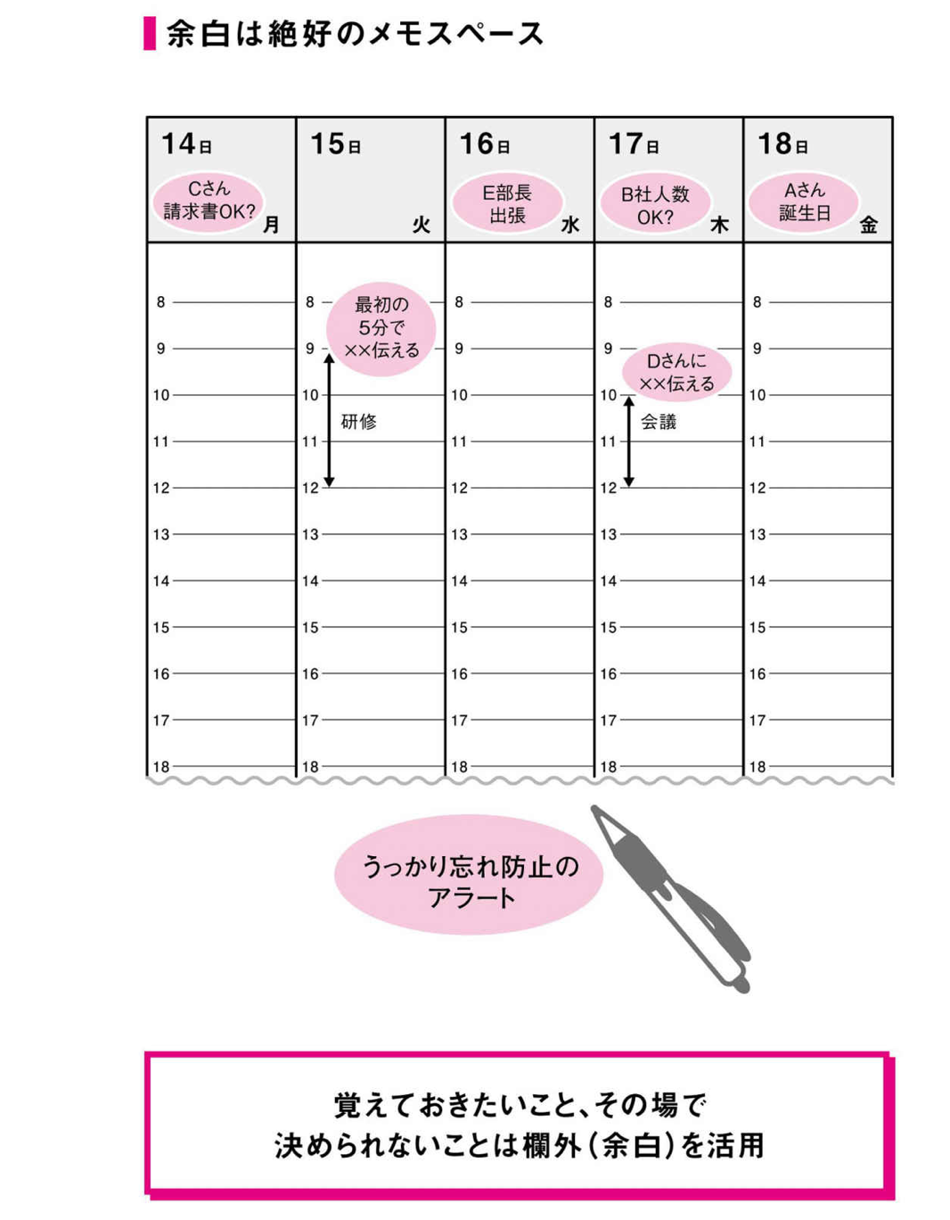 16予定は「入ってくる」ものではない。「入れる」もの 早い段階で、いかにスケジュールを確定させるかが、余裕を作るコツ