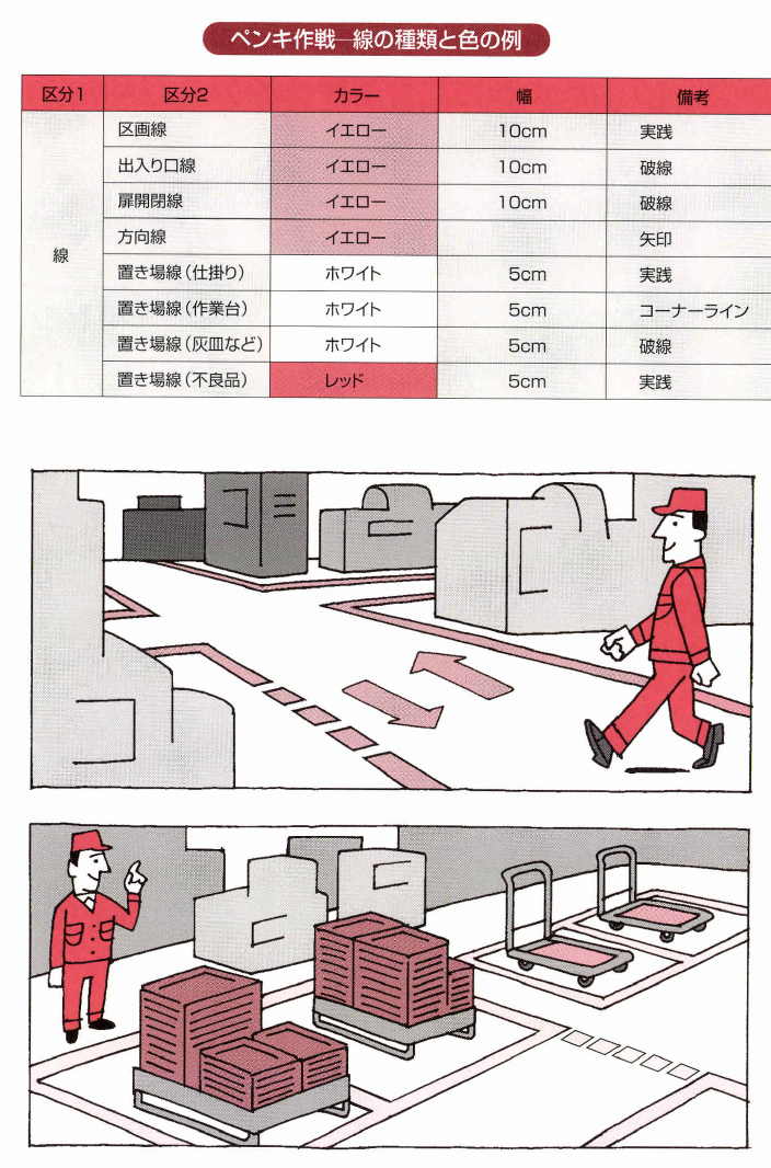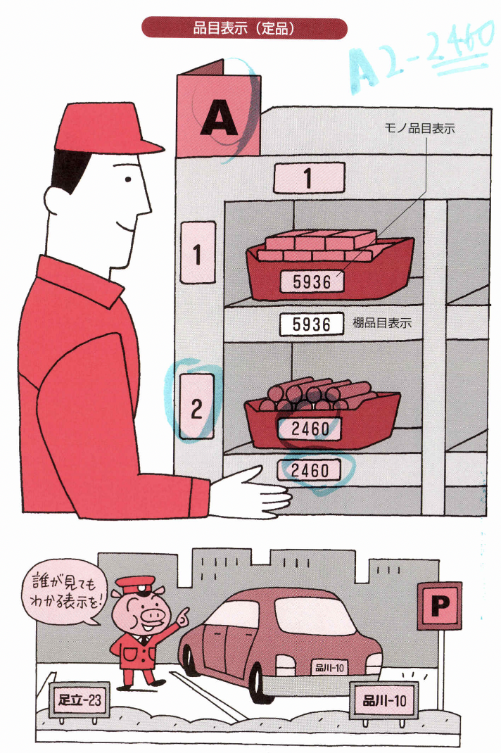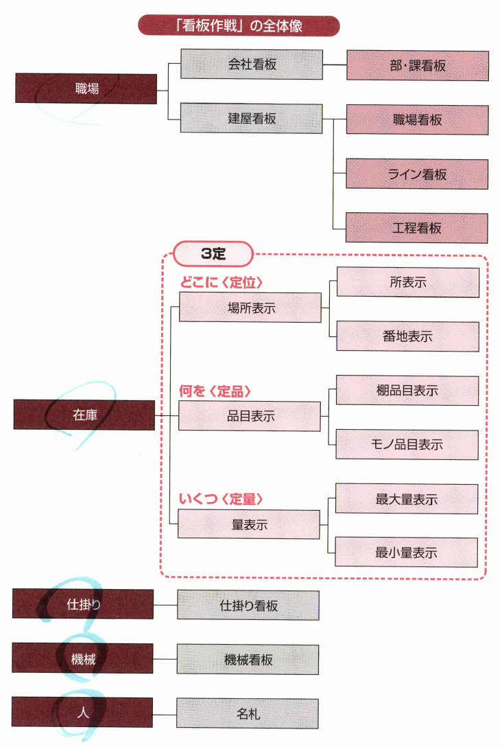 これらを「看板作戦」と呼び、「目 で見る整頓」として位置づける取り組みです。