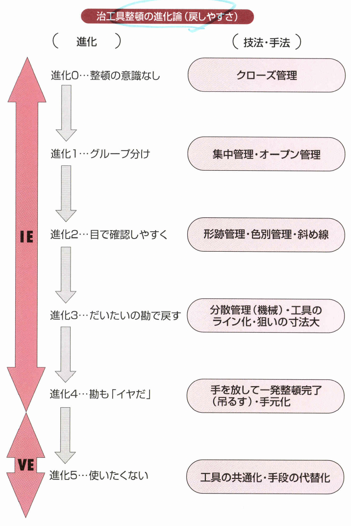 それ以 前の治工具整頓の進化論0から4までは、生産工学の 世界です。
