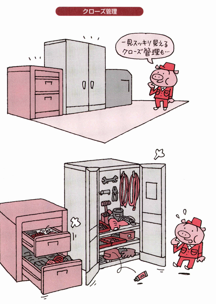 その問題を表に引きずり 出して、即改革・改善することが、目で見る管理ない しは日で見る整頓のもっとも重要なポイントなのです。