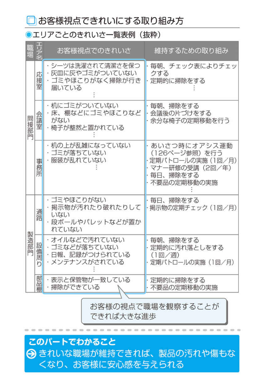取引先は、働いている人が自分の職場をきれいにしていれば、「基本ができている」「指示が浸透している」「決めたことが守られている」と、きれいな職場から不良が出にくいことを知っているのです。
