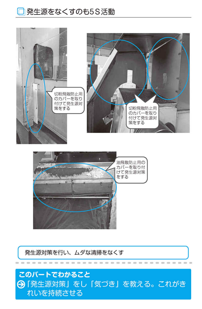 「汚れる」「落ちる」「散らかる」の元を断つ取り組みが工夫のできる職場になります。工夫しながらの発生源対策が、職場の活性化につながっていきます。
