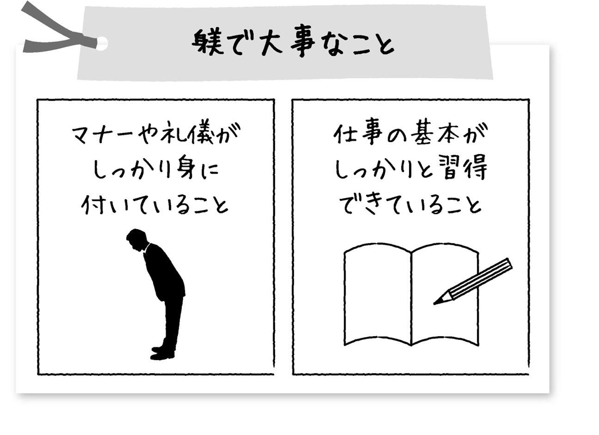「何か言った?」「いえ別に」「これから学んでもらうのは電話対応や笑顔、所作の1つひとつよ。こういったことにも技術が要るの。そして、そういう技術の訓練も、『躾』の1つというわけ」「まさに『躾』ですね」