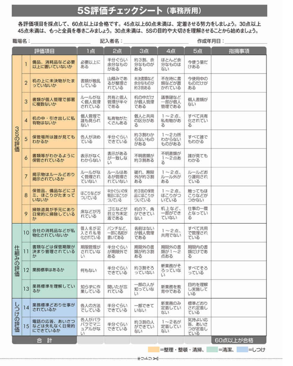 チェック表で5Sレベルがわかる