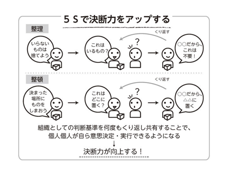 このように、5Sの判断基準を共有するプロセスを通じて、「判断基準を確立し、個々の社員が自ら正しく意思決定して実行できる」ことを組織は経験的に学習していくわけです。