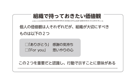 • 判断基準が共有されれば、自分の頭で考え、行動できるようになる