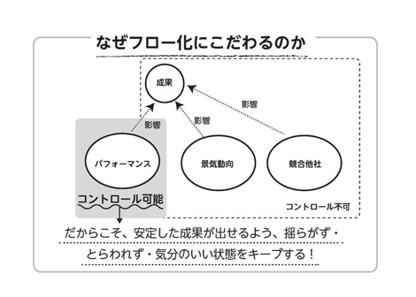 “フロー”というのは、筆者がスポーツドクターの辻秀一先生に教えていただいた概念で、「揺らがず・とらわれず・気分のいい状態」を指します。
