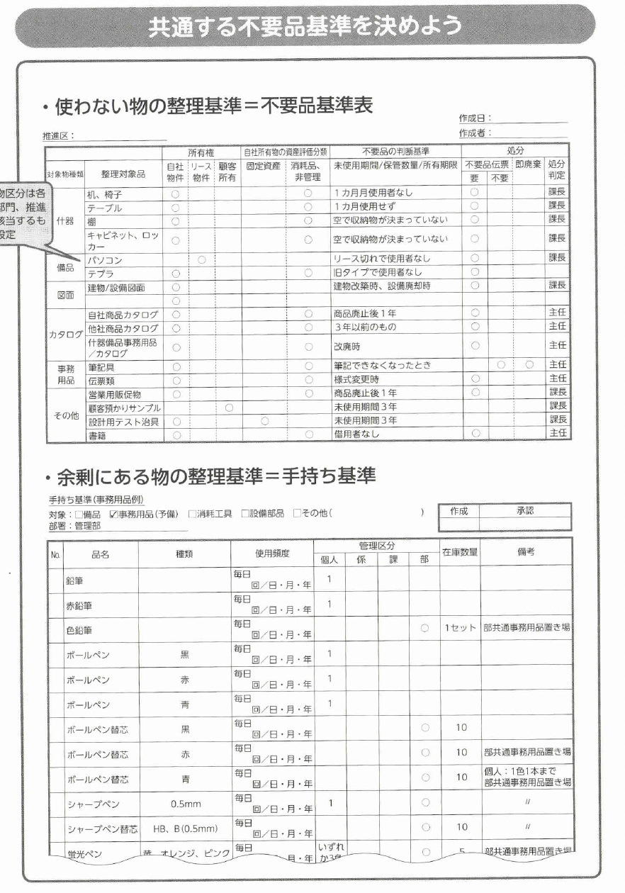 不要品を判断するための整理基準