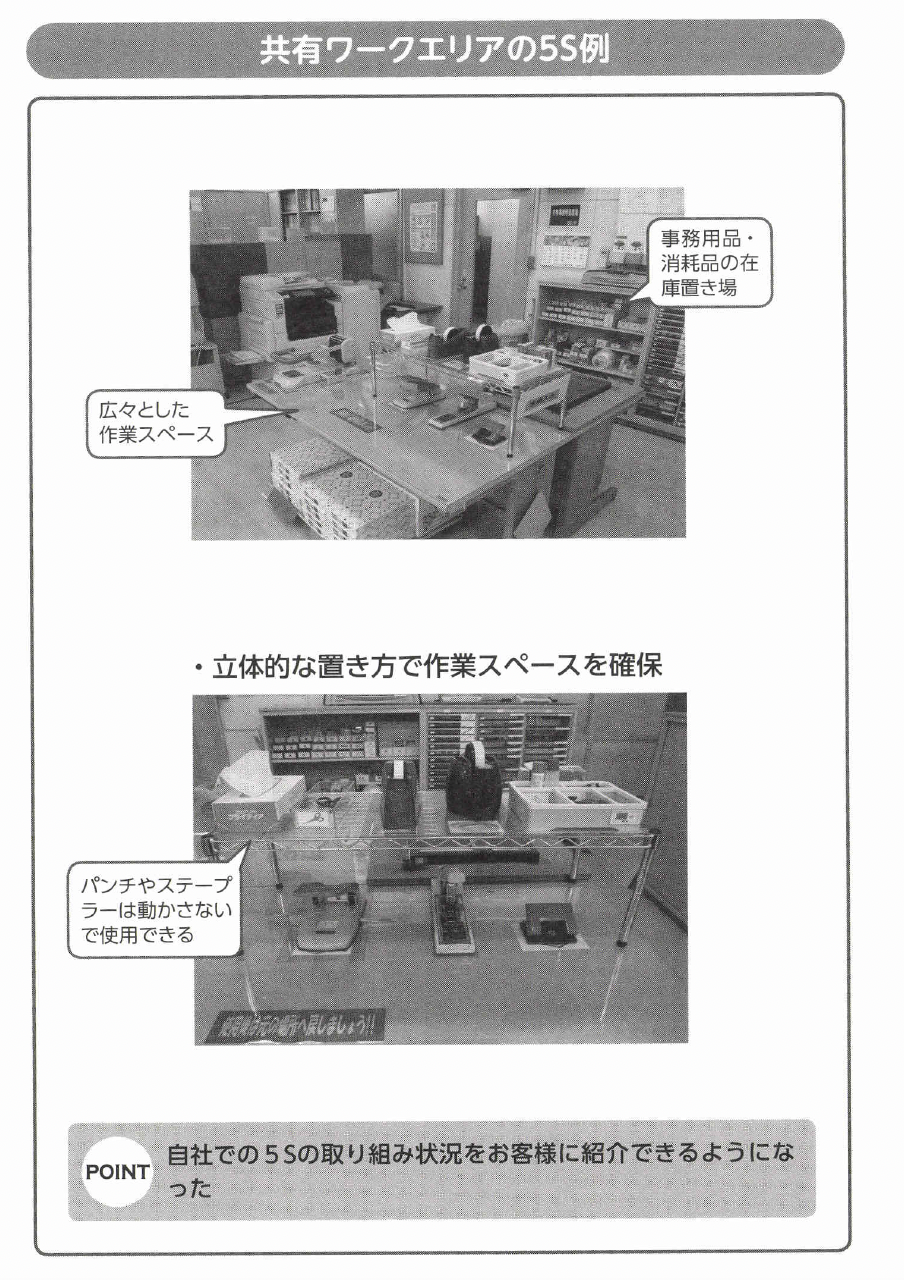また、お客様にも自信を持って事務所の5Sの状況を紹介することができるようになったそうです。