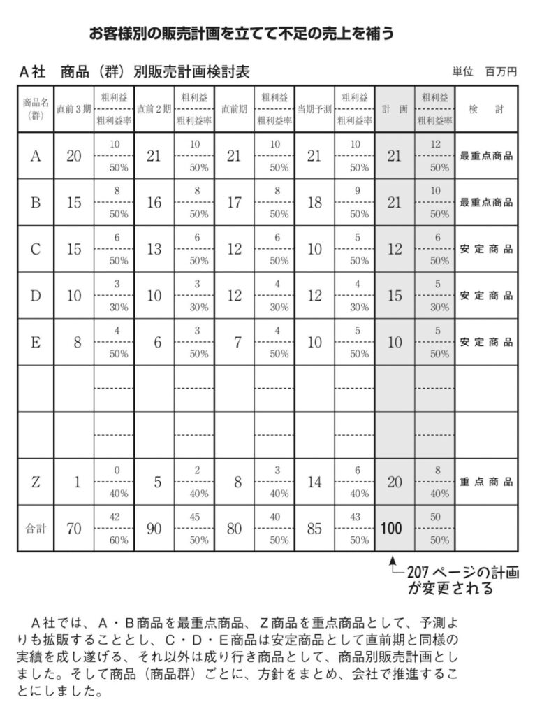 不足する売上高・粗利益をいかに獲得するかが、商品別販売戦略です。