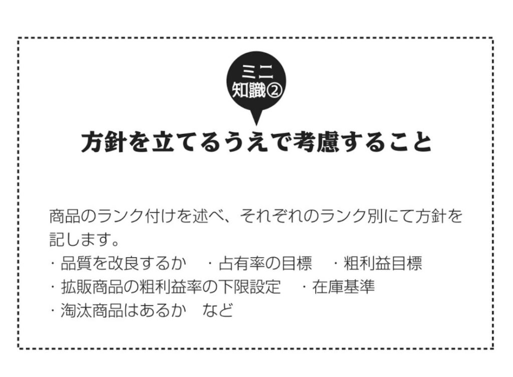 具体的には、何を(商品)、どこに(お客様)、いくら(数量)売るか、を考えるということです。