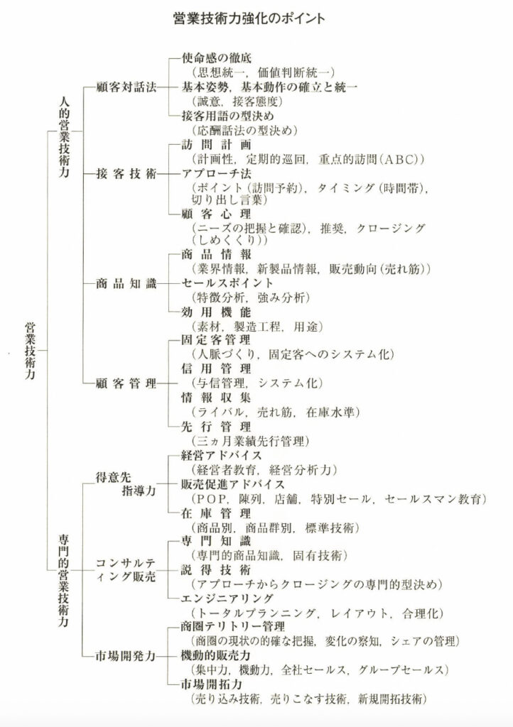 のための育成法をはっきり知らねばならない。その営業技術力とは、人的営業技術力と専門