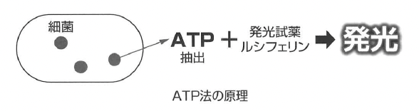 真菌(カビ類)検査(培養検査) ATP(アデノシン・トリフォスフェイト)法の原理と清浄度検査 ATPは,すべての生物に存在する化学物質で,生物はこのエネルギー媒 介物質のおかげでエネルギーを得ている。
