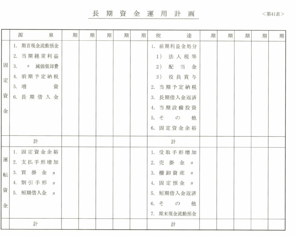 その基本的なパターンは、二枚の表から成っており、巻末の「第13表」の「長期事業構想書」と「第41表」の「長期資金運用計画書」の二つである