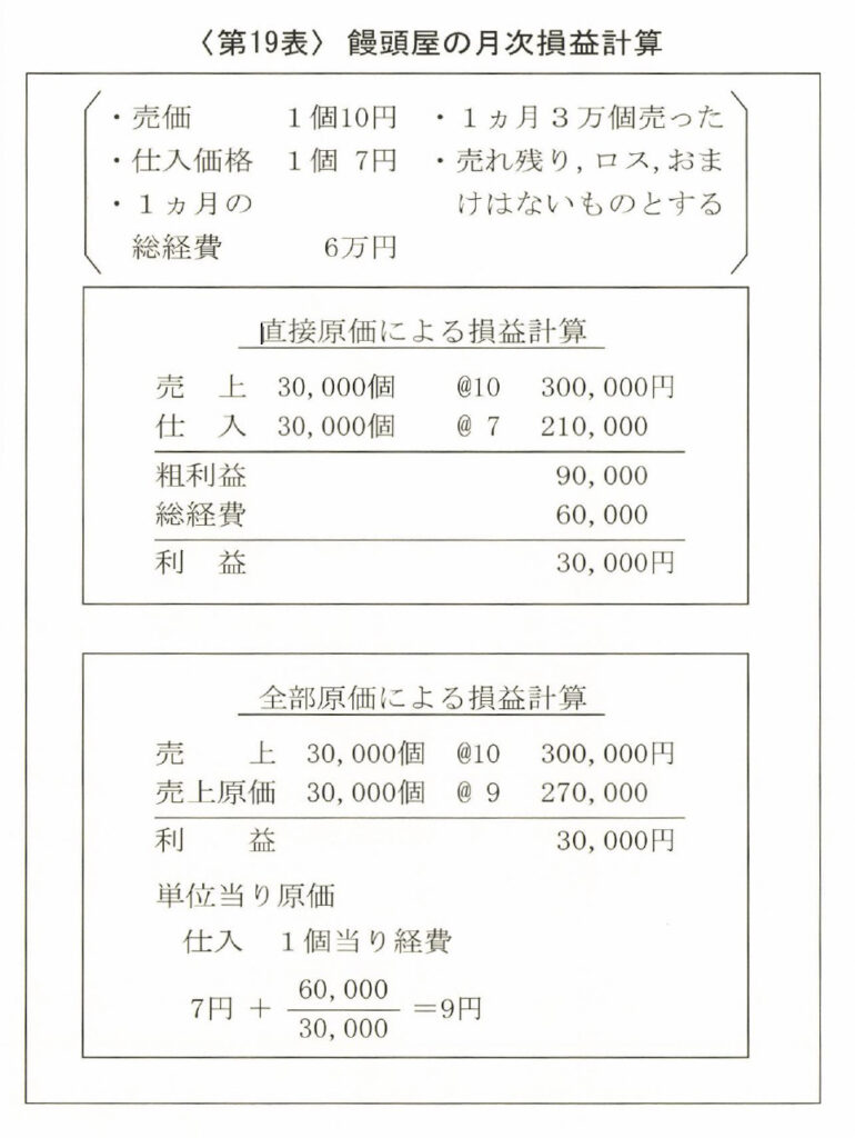例題は〈第19表)をご覧願いたい。饅頭屋の経営である。