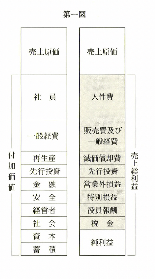第一図は、いわゆる損益計算での売上総利益とわたしのいう付加価値を比べたものだ。社