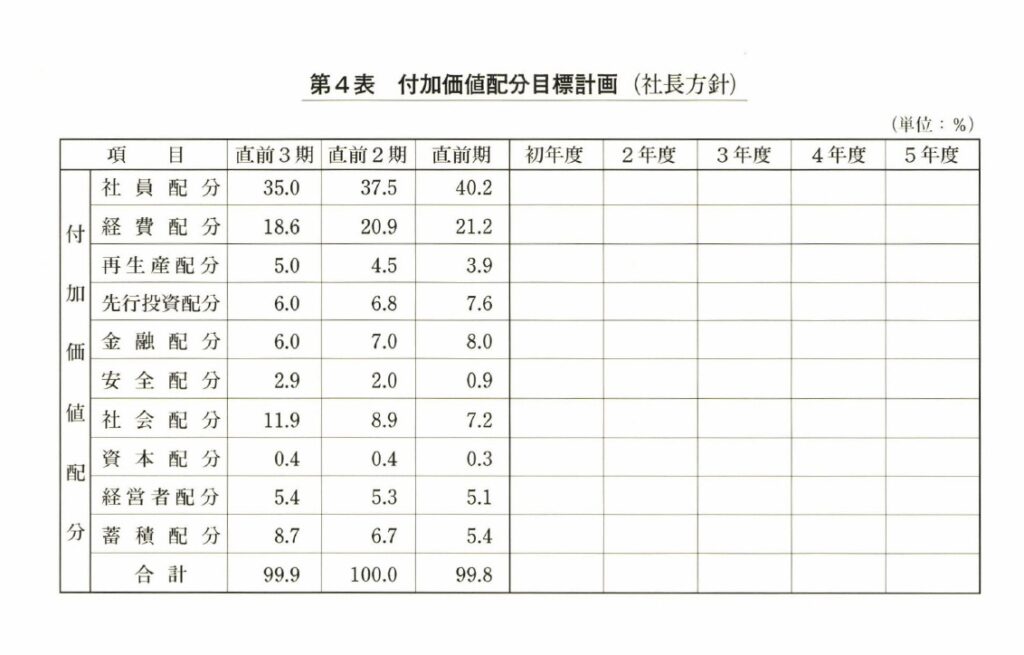 D精機の決算書から過去三期分の配分比率を拾い出し、書き入れたのが第4表である。D