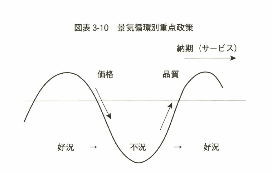 好況期のときは、納期(サービス)など目に見えないものを大事にしないといけない。だめ