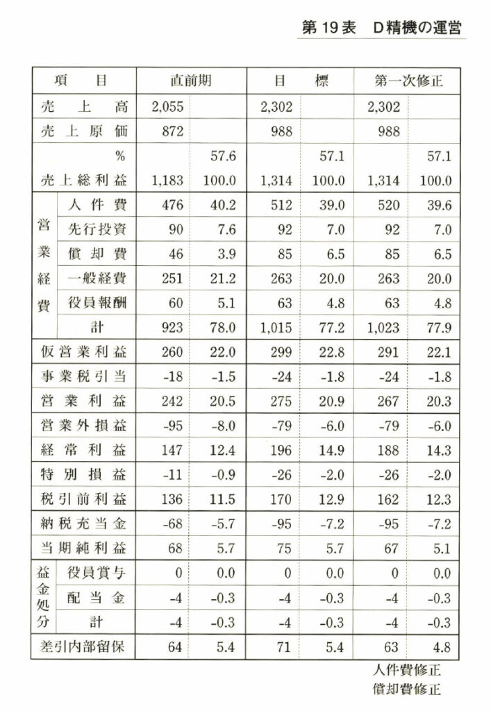 モデル会社D精機のケースでいえば、人件費計画と設備投資計画の数字に変更が必要で