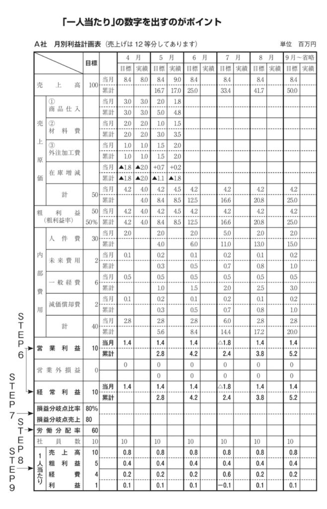 月別利益計画においては、各月の売上高が決まれば、粗利益率をかけて各月の粗利益差額は計算されます。