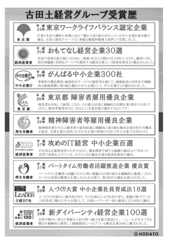 またここ5年間で経済産業省の「おもてなし経営企業30選」「新ダイバーシティ34選」にも選ばれています。