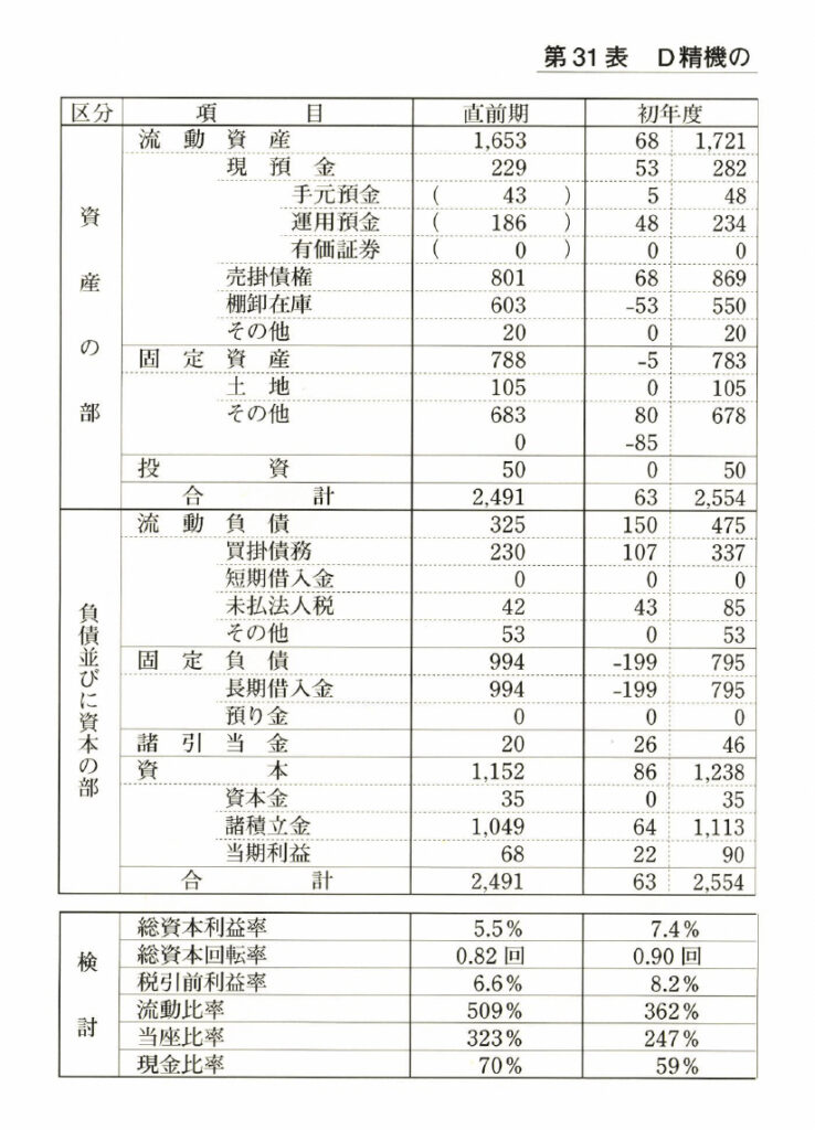 第31表「D精機の財務計画」を見ていただきたい。