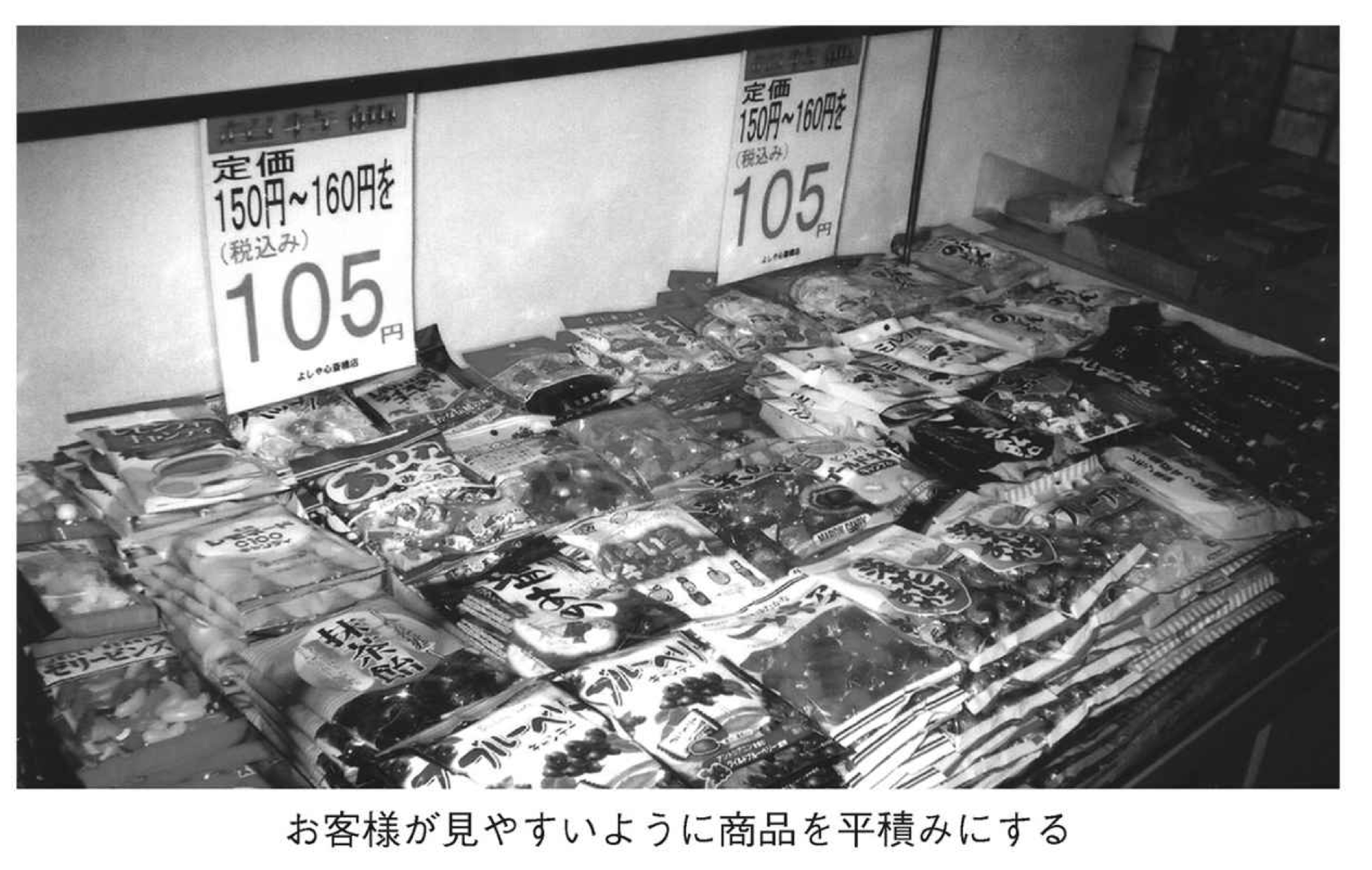 平台・平積みとともに、もうひとつ、わが社が考案した陳列アイデアは、価格別に商品を並べたことです。