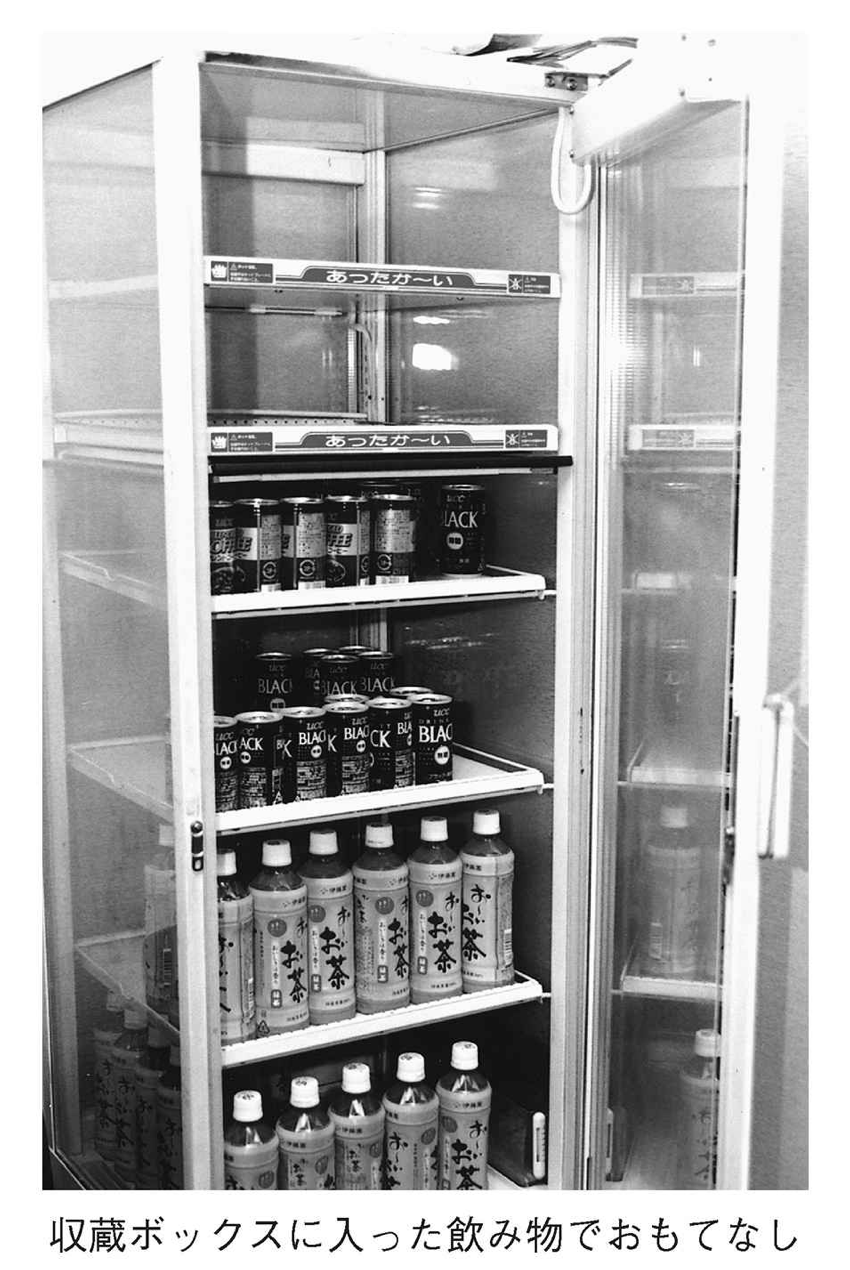 応接室には冷蔵と保温のできる収蔵ボックスがあり、そこに缶コーヒーやお茶のペットボトルなどを入れておいて、お客様が来られたら、私がお出しします。