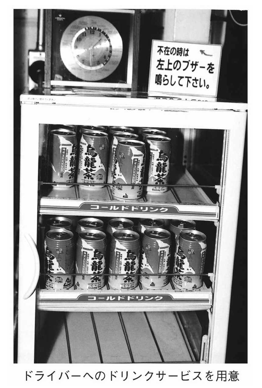 社員には、「この缶コーヒーやウーロン茶は、来てくれる運転手さんの一人ひとりが大切だからであって、心を込めて渡すように」といっています。