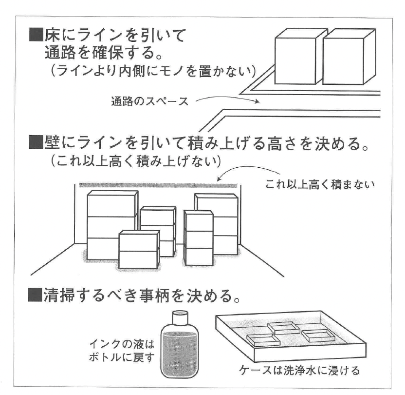 必要なモ ノがいつでも誰でも取り出せ て、使える状態にしておく。