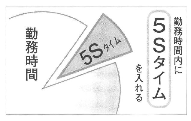 「5Sタイム」とは、「勤務時間内」 に仕事の手を休めて、整理や整頓、清 掃をすることです。