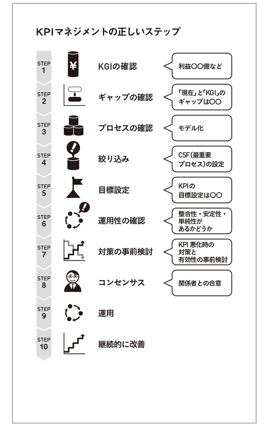 また、重要な鍵は1つなので、たくさんの「数値目標」を見ているのもKPIマネジメントではありません。