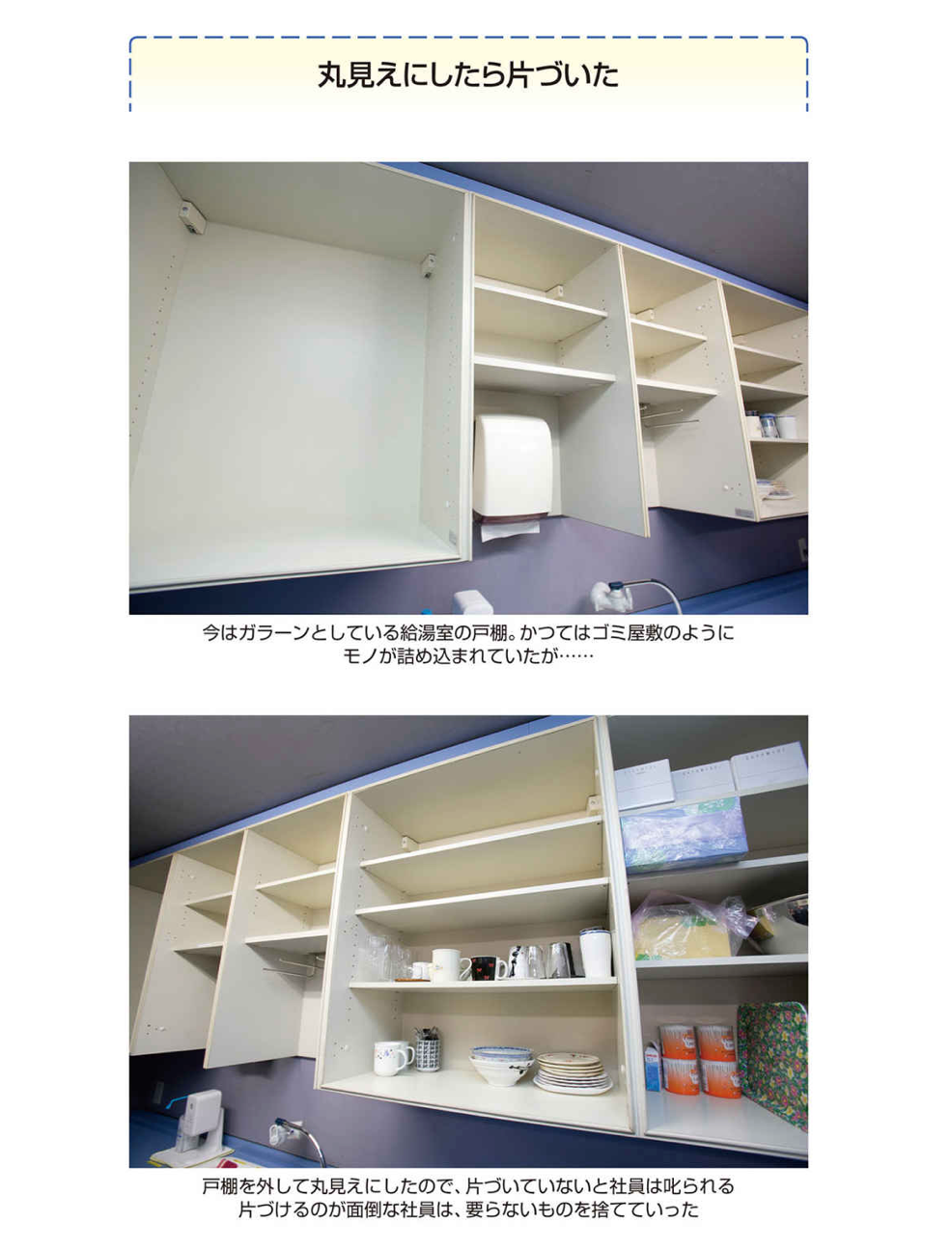 すると社員はどうしたか。私が自分たちの職場に来ると察知するや、モノを隠しました。散らかっているモノを、戸棚のなかに押し込み、私の目に触れないようにしました。
