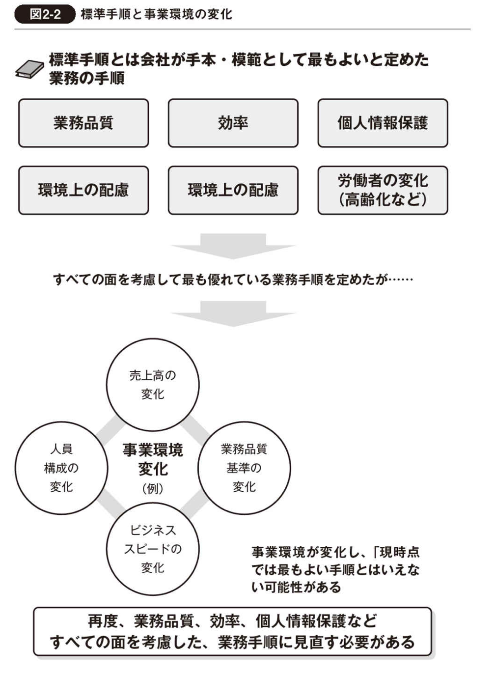 前任者から引き継いだときから業務手順が変わっていない、など、見直された形跡がない場合は「現時点では最もよい手順とはいえない」可能性があります。