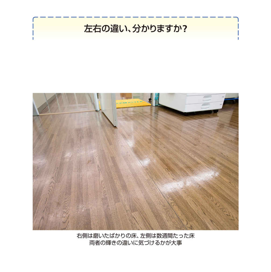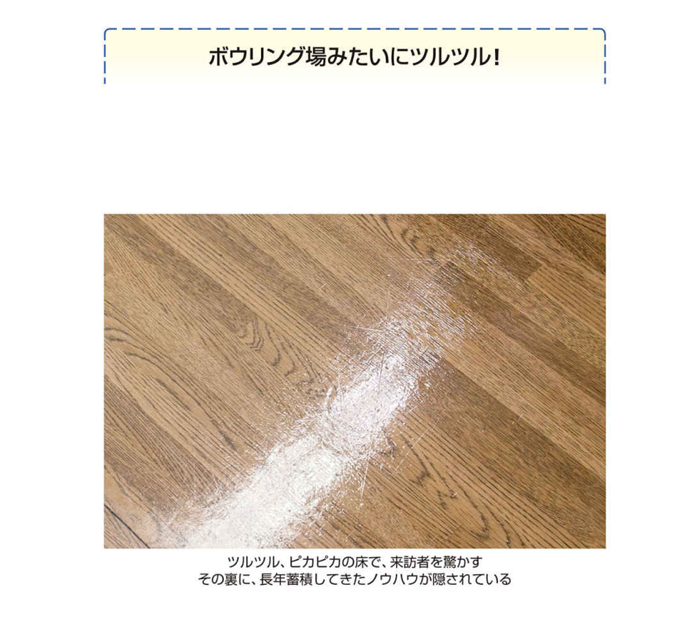 そう考えるのは、勘違いです。ではなぜ、ピカピカなのか。第1に、長年、蓄積してきたワックスがけの技術があるからです。第2に、仕組みです。