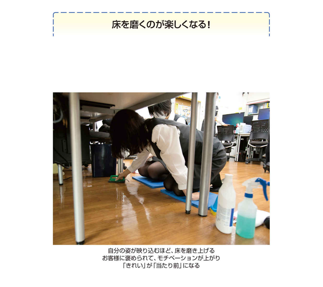 社員が、床がピカピカになるまで磨かずにいられなくなる仕組みをつくっている。