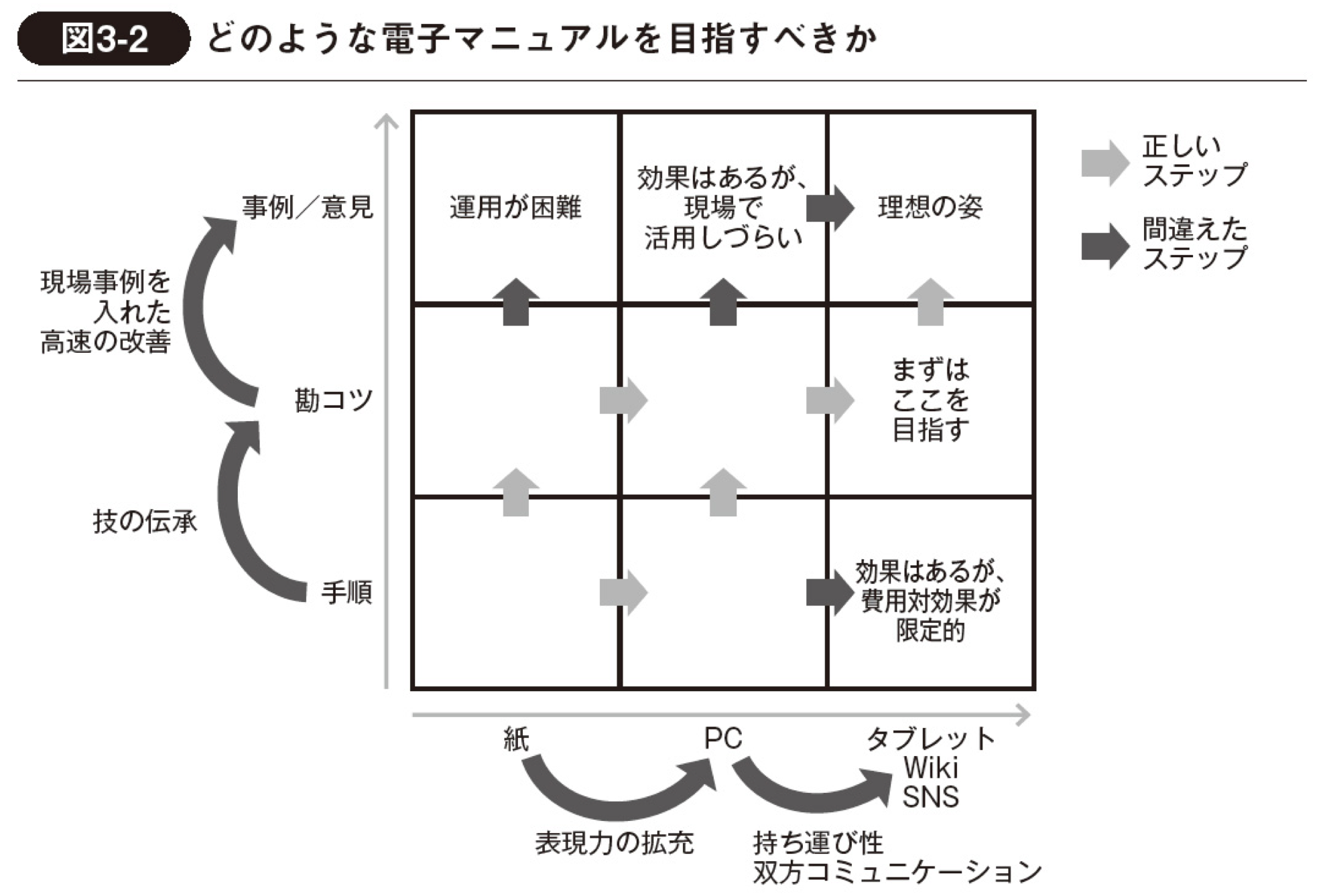 具体的な運用イメージに落とし込んで考えることにより、マニュアル毎の電子化する必要性を考えやすくなります。