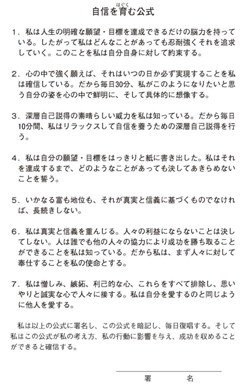 したがってこの公式を建設的な目的に用いれば、必ずあなたの輝かしい前進に役立つことを私は保証する。