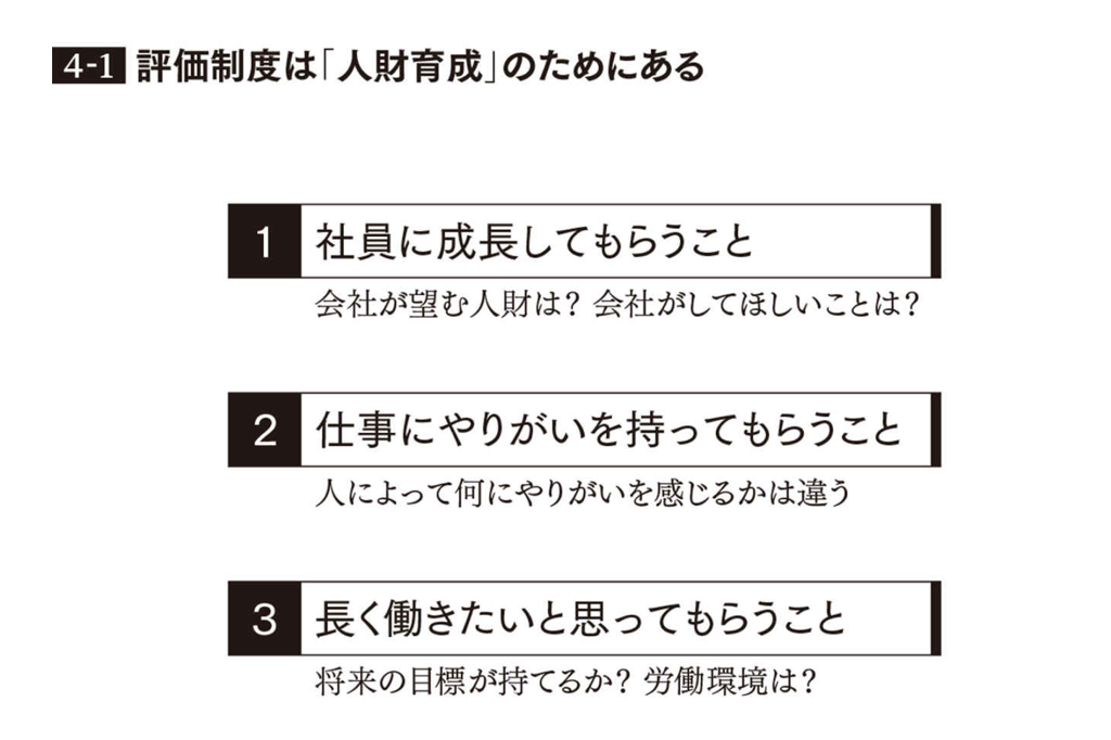 そこで本章では、制度の導入の仕方と、制度をしっかりとワークさせる方法について解説します。まず、あらためて「評価制度がなぜ必要なのか」「その本来の目的は何か」を考えてみましょう。