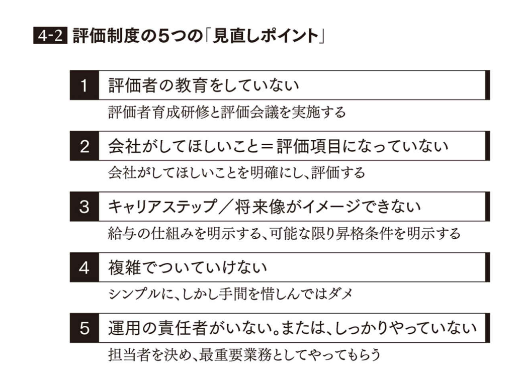 評価制度に合わせて給与体系を見直すことは、作業としては手間もかかりますから、手をつけかねるという事情も理解できますが、ここを怠れば評価が成長につながりません。