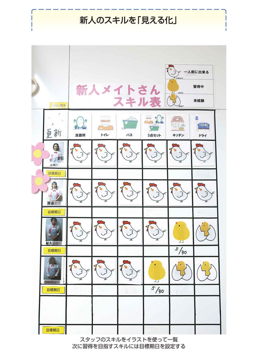 「スキル表は必ず、目立つ位置に貼り、目標期日を記入しなさい」さらに、「スキル表は見やすく、分かりやすくつくる。それができるかを見て、管理職を評価しています」と話しました。