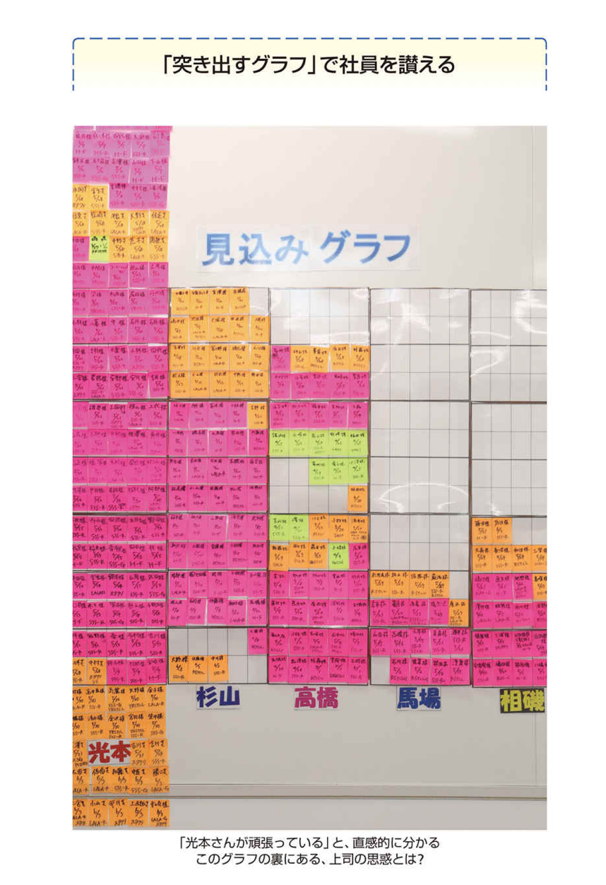 事実、光本恵里香は入社3年で課長に昇進した。こういう「突き出すグラフ」というのは、光本さん一人の頑張りだけではできません。