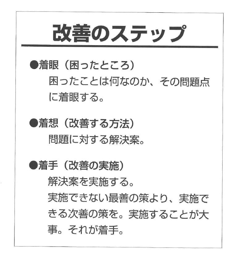 着眼←着想←着手の手順を、 「改善のステツプ」とも呼んでいます。