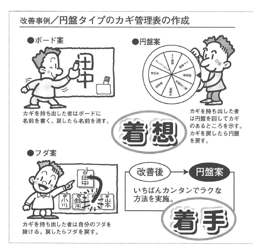 ここで採用された着想案は、 「円盤タイプのカギ管理表の作成」で す。