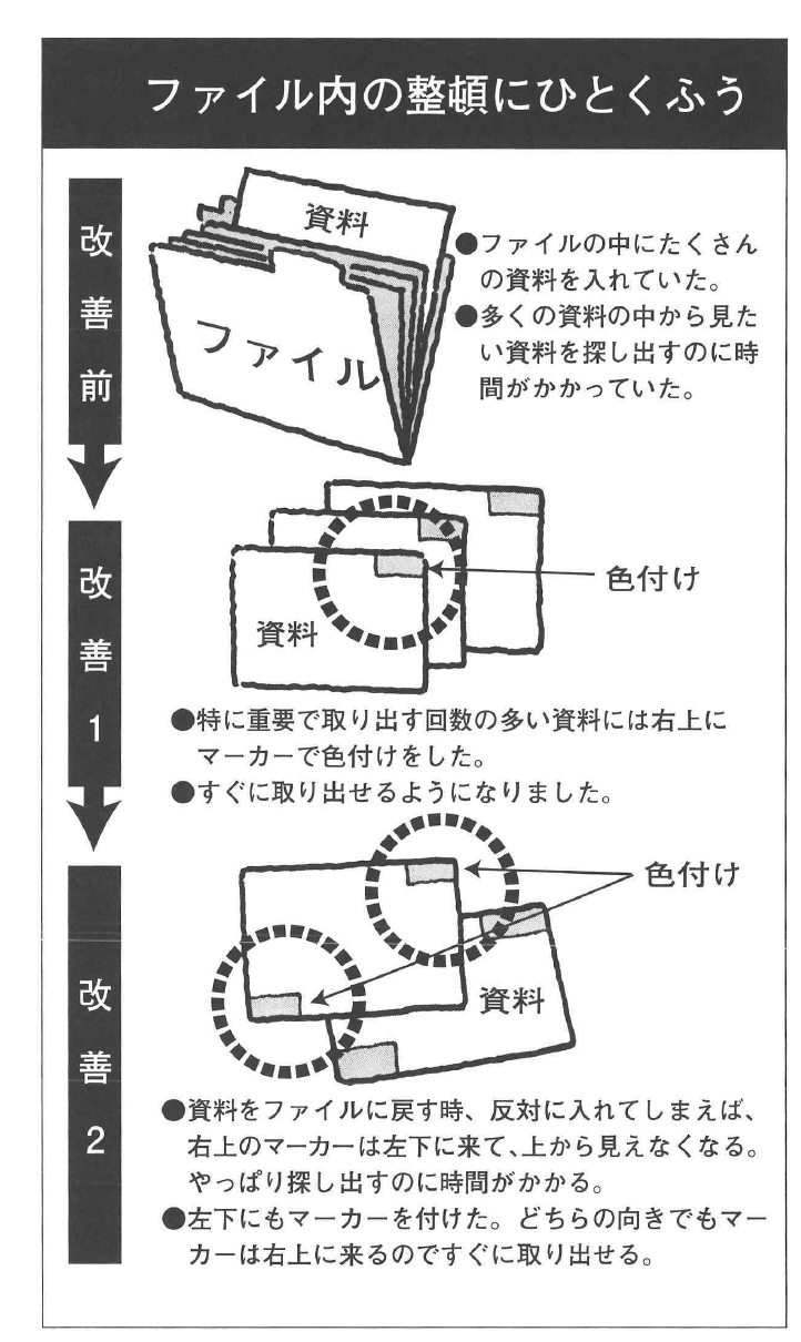 社内で 実施された「5S改善」をおおいに参 考にしましよう。