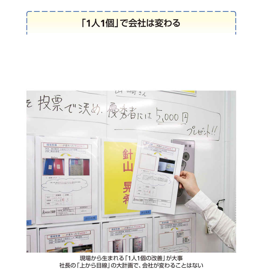 社長1人で考えて、一度に何百個もの変化を起こそうとしても、絶対にうまくいきません。